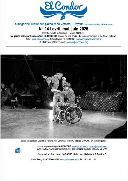 El Condor 141 Petit journal illustré gratuit du Royans - Vercors pour la période de avril à juin 2026 Files EL CONDOR N 141.pdf shared by actupro today at 06:15 am GMT · 35 downloads · 13.59 Mbytes · in El Condor 141 details